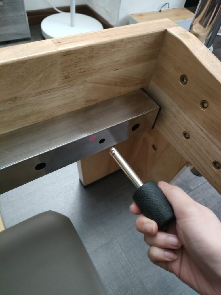 ①すべてのスプリング、フットボード、ショルダーレスト、頭側のストッパーを外す。